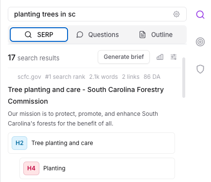 - Easily generate a content brief with just a few clicks