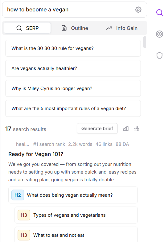 The Info Gain tab helps you go beyond the basics by pulling fresh, credible details from top content.
