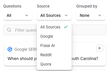 In the Questions tab, you will see a list of common questions asked in places like Google, Reddit, and Quora.