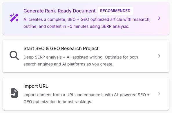 ๐ Best for: Creating a new SEO & GEO optimized article in one smooth workflow.
