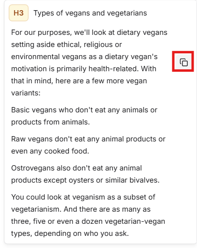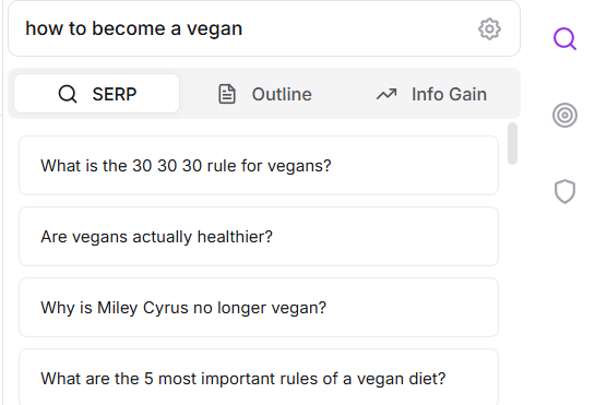 At the very top of the SERP tab, you’ll find the People Also Ask questions—pulled straight from Google. These questions give you a quick pulse on what users are really trying to learn. Click to copy any of them into your editor as inspiration for headings or talking points.