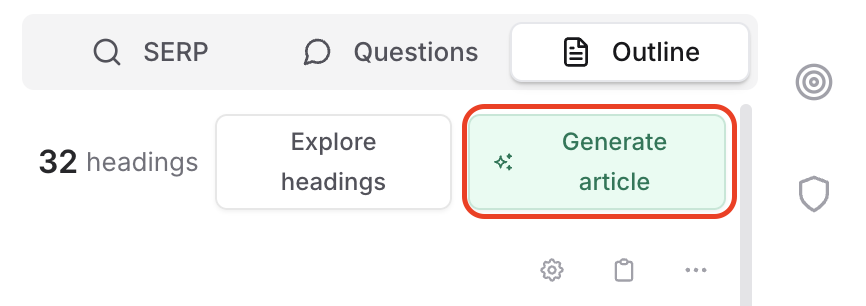 If you'd like AI to take over the writing of your first draft, click the green Generate article button at the top of the outline to jump into our Rank Ready document flow.