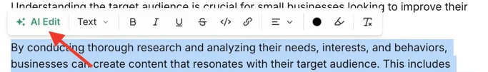 Already have content on the page? Highlight what you want to improve and let AI Edit do the heavy lifting.