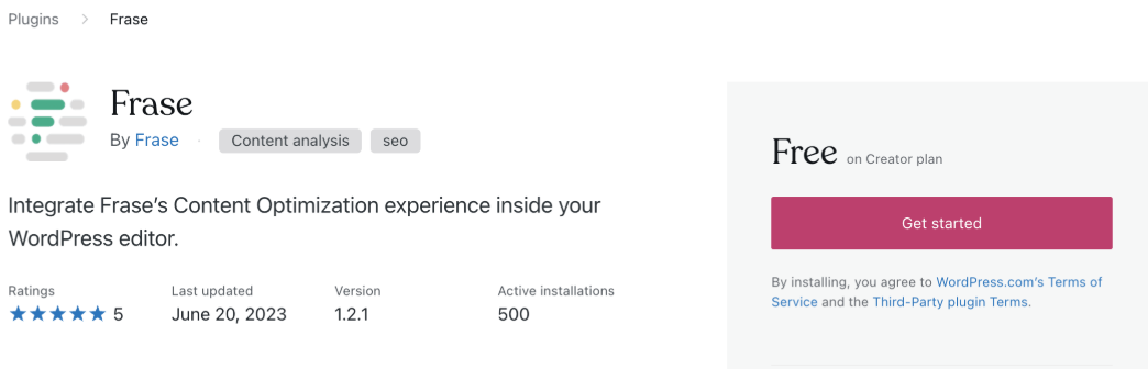 The WordPress add-on allows access to Frase's optimization tools from inside the WordPress editor.