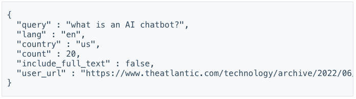 | include_full_text | Whether you want the response to include full text for each URL. boolean (default: false) |